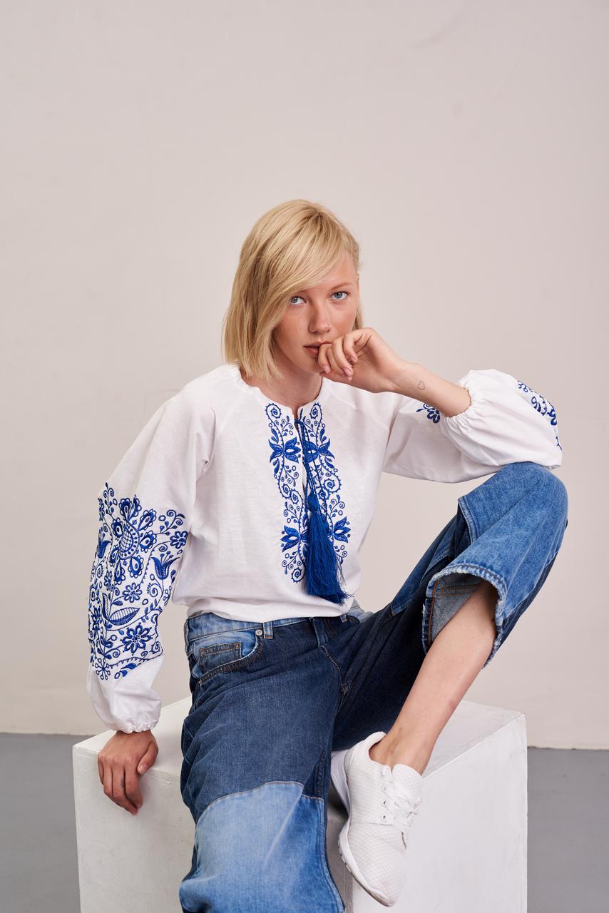 Жіноча блуза MEREZHKA "Орнамент" синя вишивка