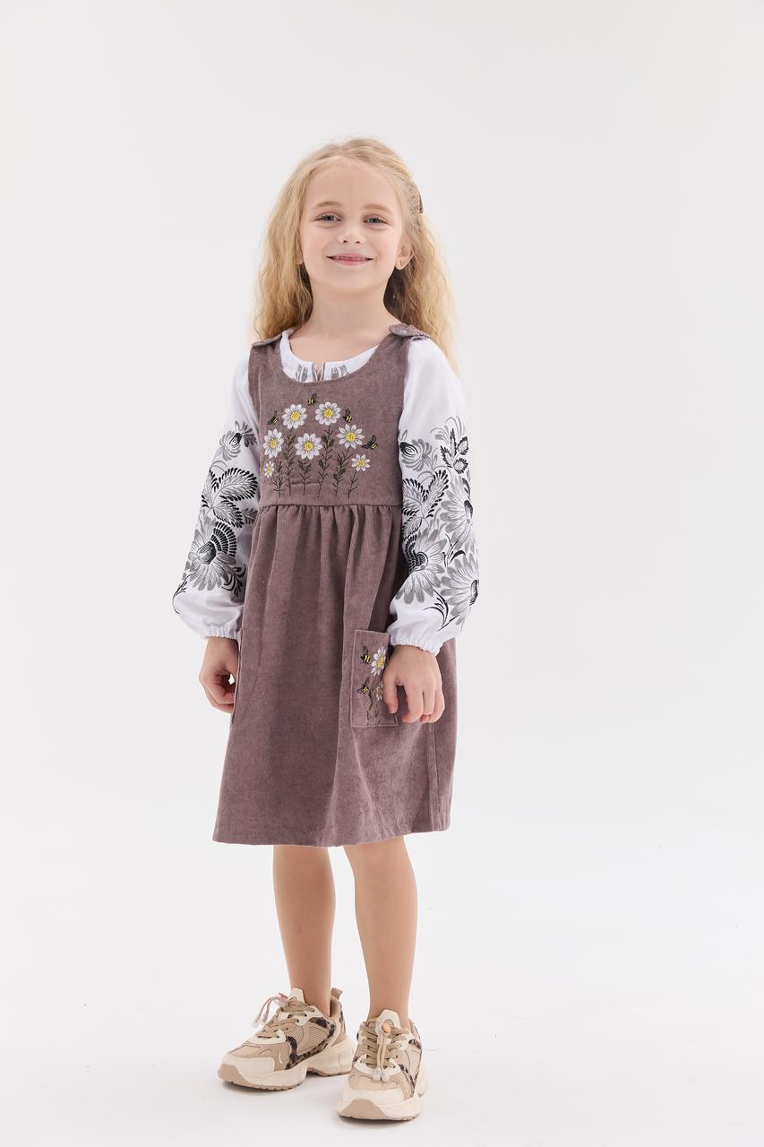 Сарафан з вишивкою MEREZHKA "Ромашка" рожево-коричневий